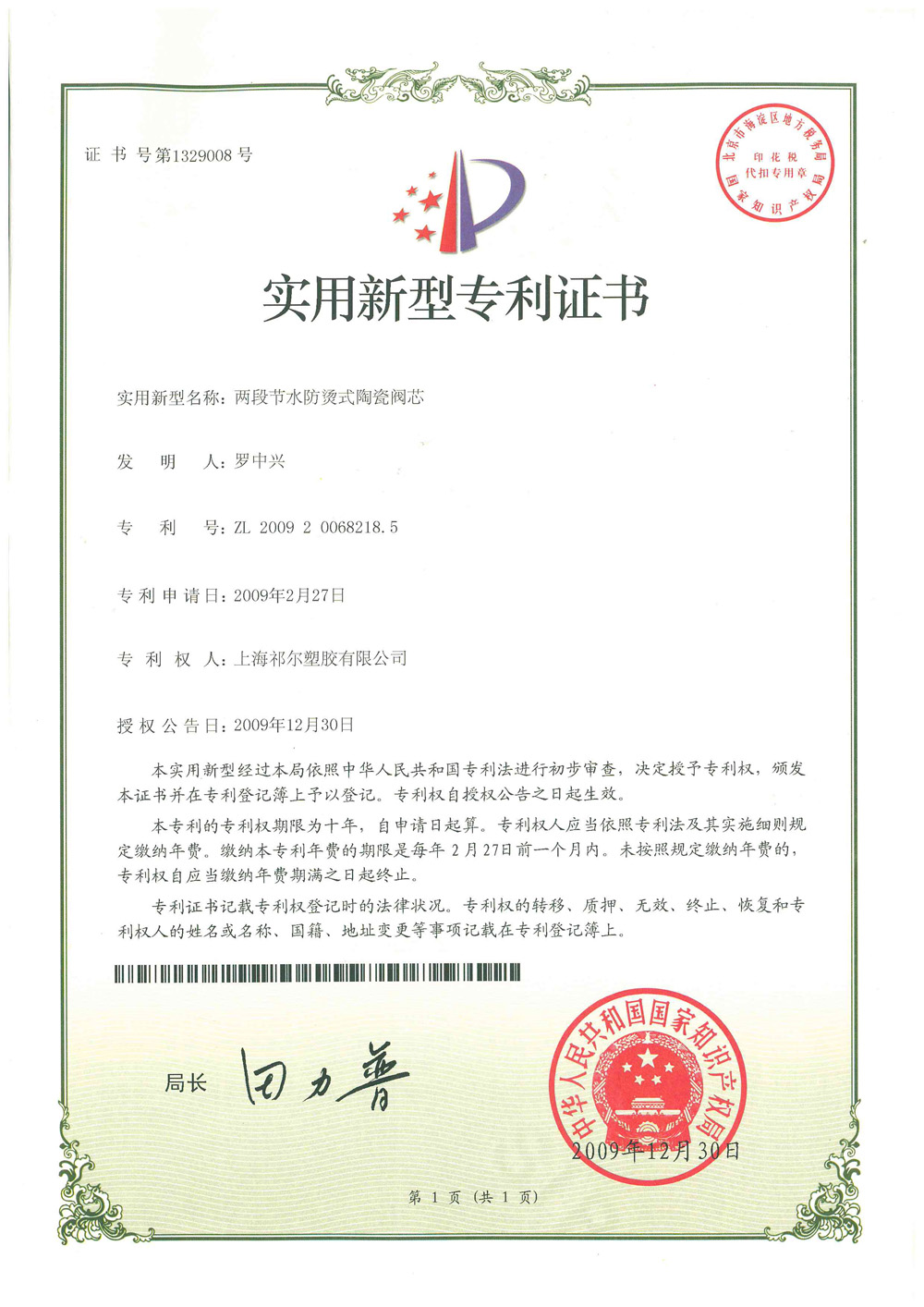 Ceramic valve core with water control function