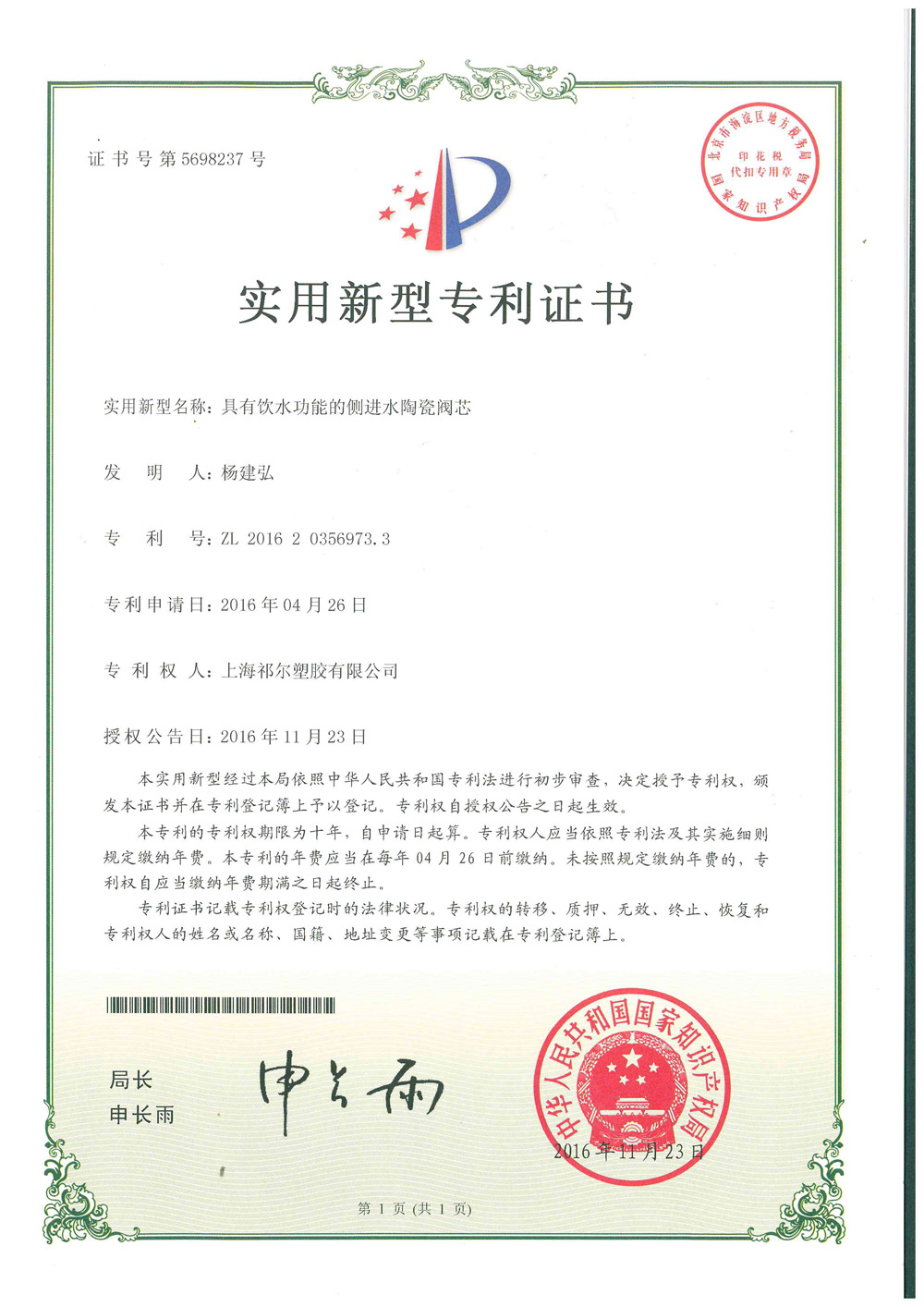 Side entry non-ceramic valve with drinking water function
